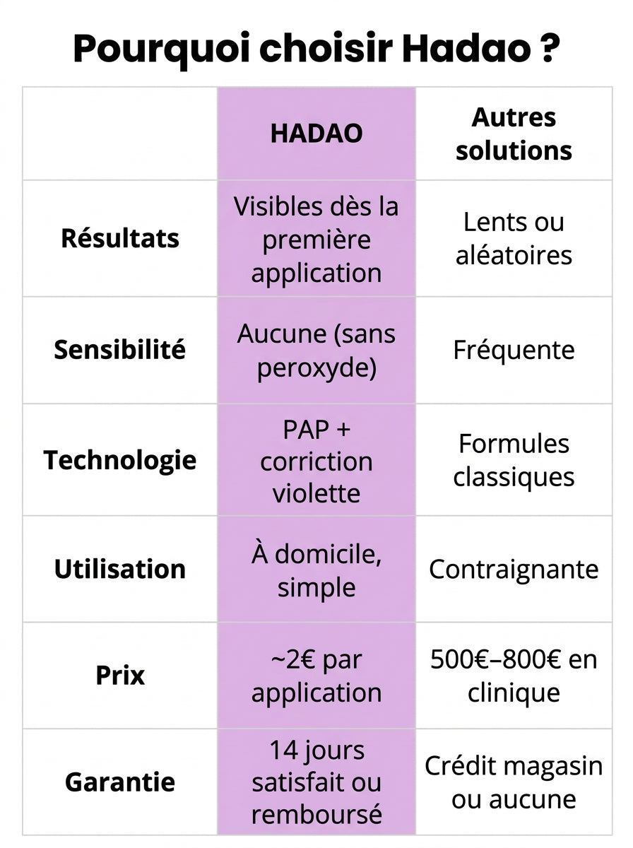 Jusqu’à 7 teintes plus blanches avec une utilisation régulière, sans sensibilité.